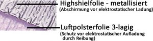 Aufbau der Luftpolsterfolie, zwei- bzw. dreilagig: