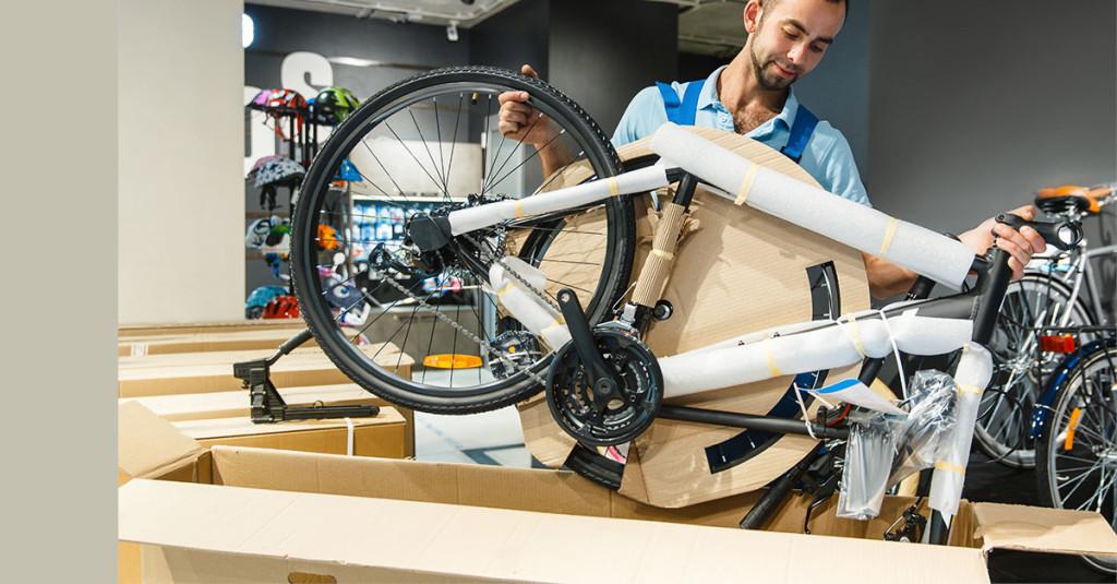 Damit der Versand sicher gelingt, muss der Karton in Form und Größe auf das Sportgerät abgestimmt sein – so dass die Skier oder das Fahrrad nicht über den Rand oder die Ecke hinausragen.